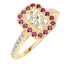 « L'ATELIER » NO. 211518Ring Yellow gold 9 carats - Cluster of natural diamonds Baguette equivalent 0.5 - Halo Ruby - Setting Diamond white 4.7 (44)
