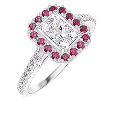 « L'ATELIER » NO. 211520Ring White gold 9 carats - Cluster of natural diamonds Baguette equivalent 0.5 - Halo Ruby - Setting Diamond white 4.8 (49)