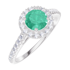 « L'ATELIER » NO. 1006935Ring White gold 9 carats - Synthetic emerald round 0.5 Carats - Halo Laboratory Diamond - Setting Laboratory Diamond 4.7 (18)