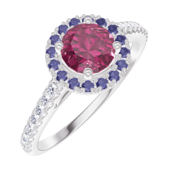 « L'ATELIER » NO. 170328Ring White gold 9 carats - Ruby round 0.5 Carats - Halo Blue Sapphire - Setting Diamond white 4.7 (18)