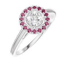 « L'ATELIER » NO. 211420Ring White gold 9 carats - Cluster of natural diamonds Round equivalent 0.5 - Halo Ruby 4.7 (18)