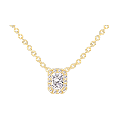Necklace Yellow gold 18 carats - Diamond white Baguette 0.3 Carats - Halo Diamond white - Chain Rolo