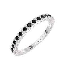 This wedding ring from the Origin Collection embodies purity and captivating light. Crafted in 18K white gold, it features a full circle setting of 33 black diamonds totaling 0.46 carats.