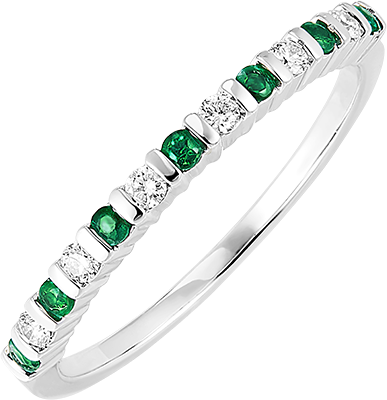 A white gold ring set with alternating emeralds and diamonds. A classic, timeless piece of jewellery with a touch of colour.