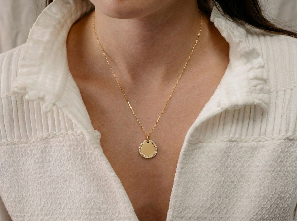 Aveline Engravable Medallion – 9ct Yellow Gold and Lab-Grown Diamonds