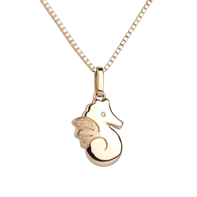 A small yellow gold seahorse with a diamond eye. Big model.