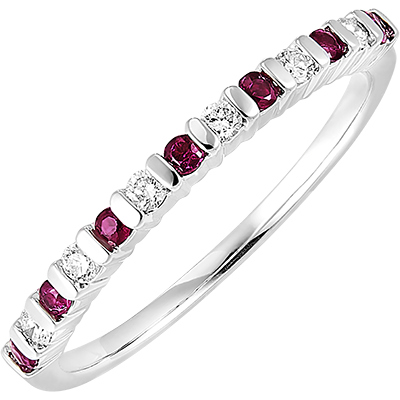 A white gold ring set with alternating rubies and diamonds. A classic yet timeless piece of jewellery for a touch of colour.