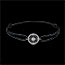 This bracelet is set with one white diamond solitaire of 0.01 carats (HSI quality) and four black diamonds totaling 0.016 carats, all of Very Good quality.
