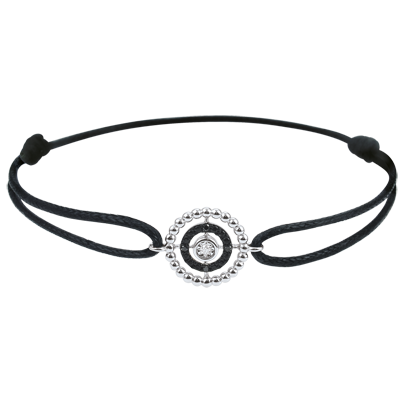 Bracelet Salty Flower - circle - white gold and diamonds - black cord