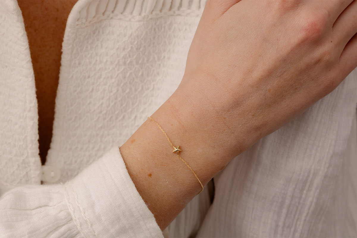 A stylised star delicately suspended on a fine chain.A celestial and radiant bracelet, like a wish made to be worn against the skin.