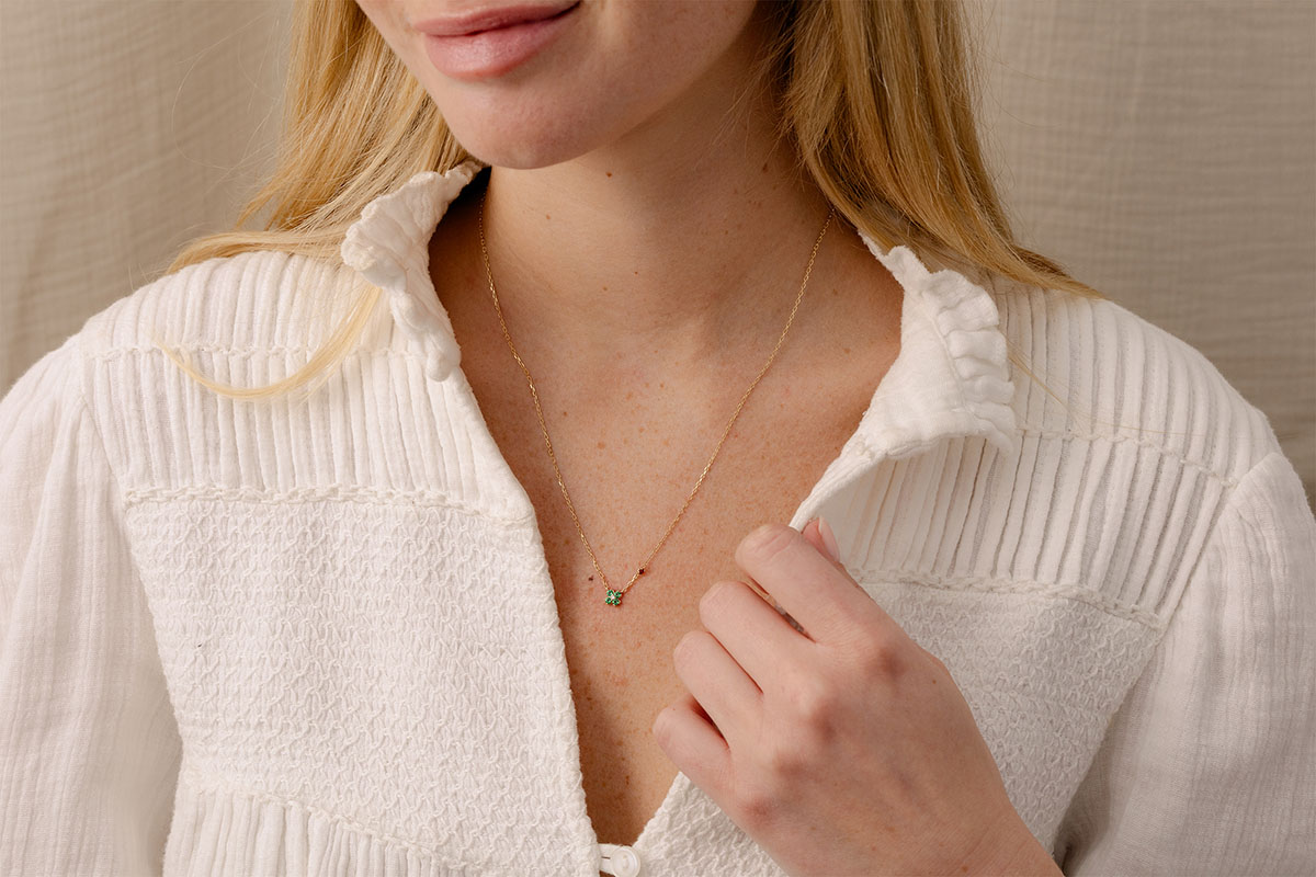 OISEAU DE PARADIS Nº21Necklace Shamrock - Yellow gold 9 carats - Laboratory Diamond, Synthetic ruby, Synthetic emerald ID : 3887