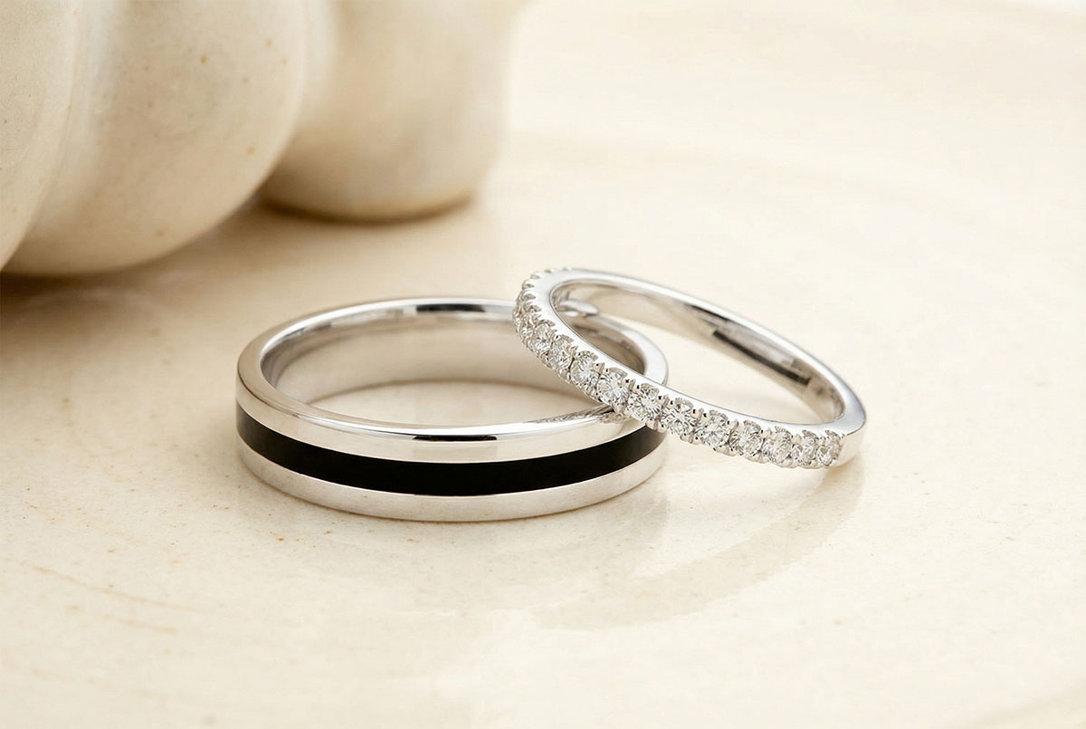 Clair Obscur & Bettina Wedding Ring Duo – White Gold, Lacquer & Diamonds – 18 Carat