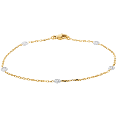 A new constellation is born when a fine gold chain joins these diamonds together 18cm.5 diamonds : 0.07 carat - White and Yellow Gold (18K Gold = 750/-): 1.55 g. 5 diamonds : 0.07 carat - White and Yellow Gold (18K Gold = 750/-): 1.4 g. More dimensions