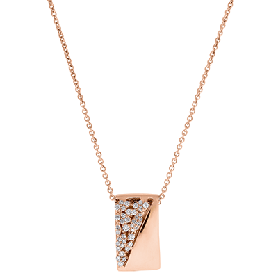 A design with character that combines with boldness and prestige the sobriety of polished pink gold paving diamonds. With a 45cm long chain, adjustable at 42cm. With gold chain 750/- . 38 diamonds : 0.21 carat - Pink gold (18K Gold = 750/-): 6.7 g. More dimensions