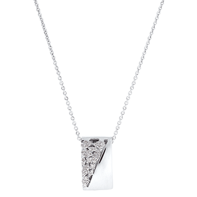 A design with character that combines with boldness and prestige the sobriety of polished white gold paving diamonds. With a 45cm long chain, adjustable at 42cm. With gold chain 375/- . 38 diamonds : 0.21 carat - White gold (9K Gold = 375/-): 5.1 g. More dimensions