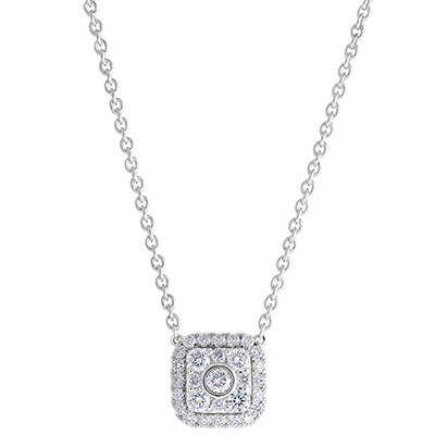 This white gold necklace will enhance any of your outfits with its diamonds-padded cushion pendant. With a 45cm long chain, adjustable at 42cm. With gold chain 375/- . 29 diamonds : 0.26 carat - White gold (9K Gold = 375/-): 2.4 g. Cluster of natural diamonds : 29 - More dimensions