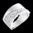 Customer reviews highlight the beauty and quality of this wide white gold ring with pavé diamonds. Many appreciate its elegant and unique design, though some mention slight discomfort from the diamonds touching adjacent fingers. Overall, the ring is praised for its character and refined craftsmanship.