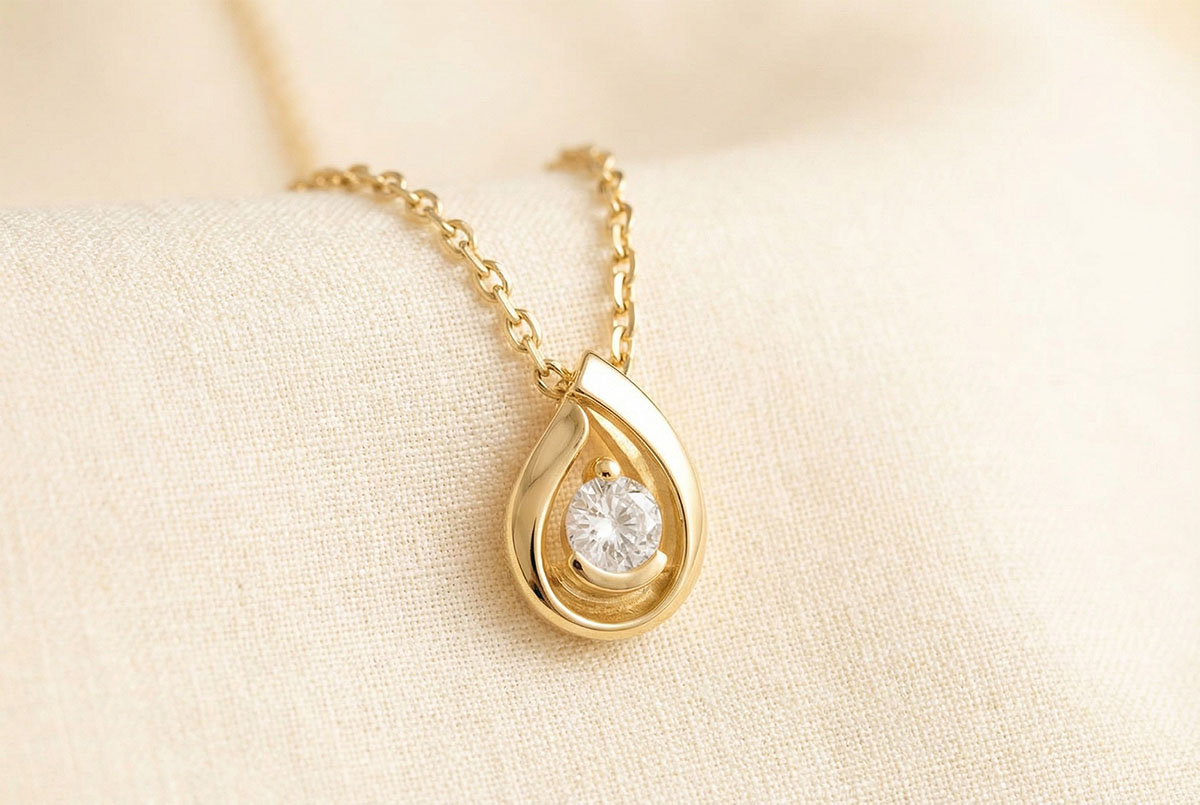 Diamond teardrop pendant-yellow gold - 0.21 carat