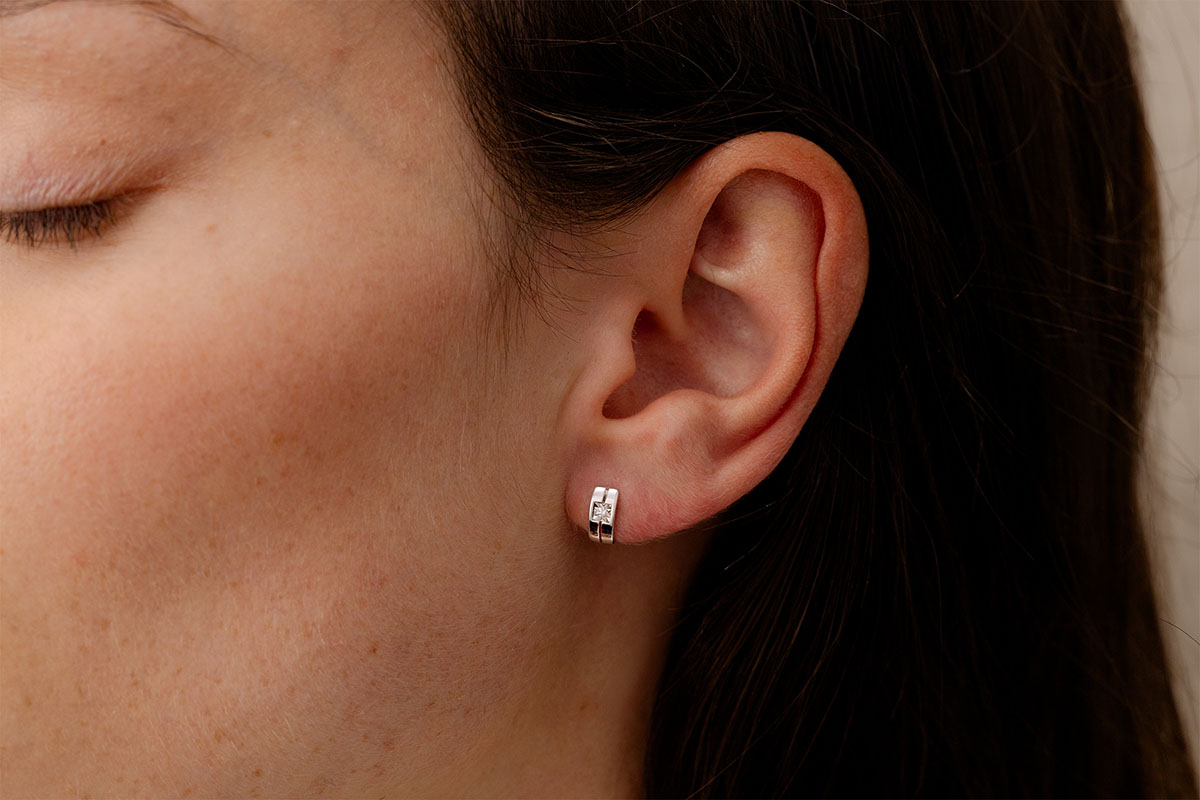 2 diamonds : 0.03 carat - White gold (18K Gold = 750/-): 1.1 g.