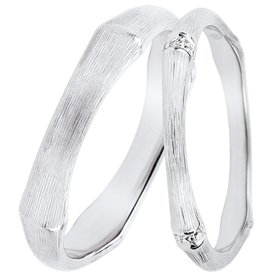 An elegant pair of white gold wedding bands, inspired by the delicate lines of a bamboo branch and featuring a brushed finish. White gold (18K Gold = 750/-): 0 g.More dimensions