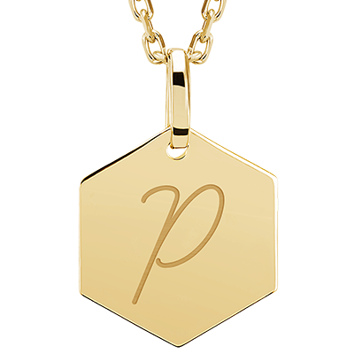Hexagonal medal engraved - Yellow gold 9 carats