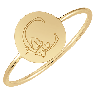 Engraved round medallion ring - 9K yellow gold - ABC Yours Collection - Edenly Yours