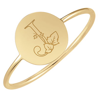 Engraved round medallion ring - 9K yellow gold - ABC Yours Collection - Edenly Yours