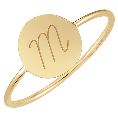 Engraved round medallion ring - 9K yellow gold - ABC Yours Collection - Edenly Yours