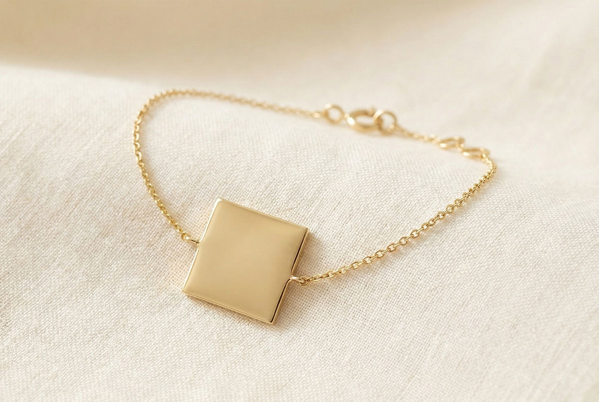 Square medal bracelet to be engraved - Yellow gold 9 carats