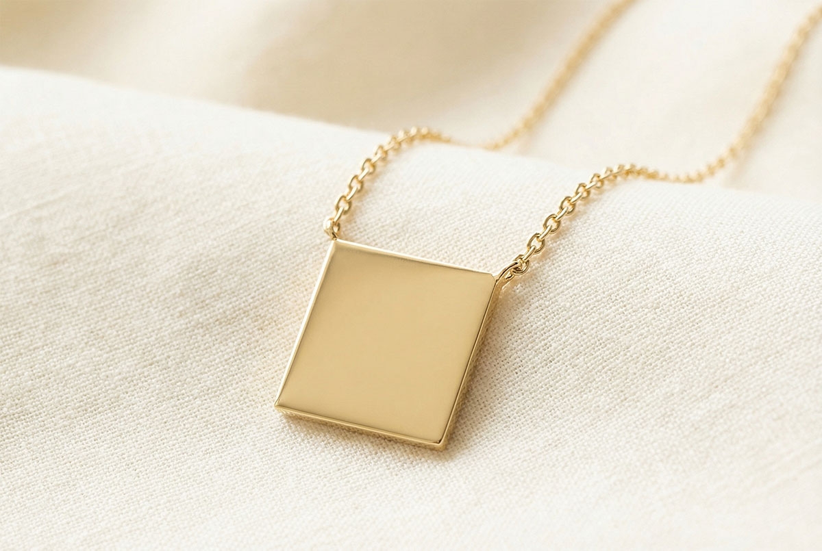 Square medal necklace to be engraved - Yellow gold 18 carats