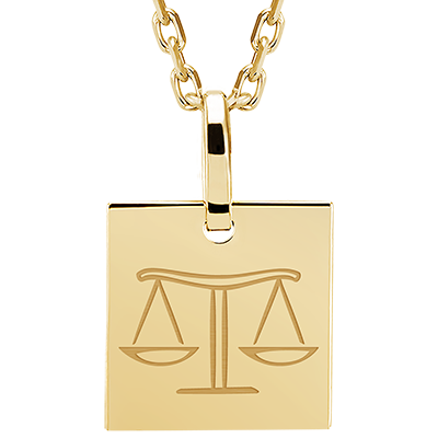 Square medal engraved - Libra - 9K yellow gold - Zodiac Yours Collection - Edenly Yours