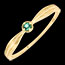 A radiant, round synthetic emerald graces the center of a finely sculpted, slender 9-carat yellow gold band. This delicate design evokes the gentle breeze flowing through golden leaves.