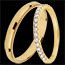 A refined pair of wedding bands for her & him. For her, a half-pavé band set with 18 sparkling diamonds (0.26 carat), for him, a finely engraved 3mm yellow gold band.…
