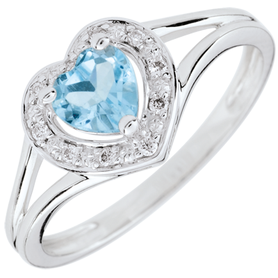A precious heart in white gold and encrusted with diamonds is the setting for a lavish blue topaz.