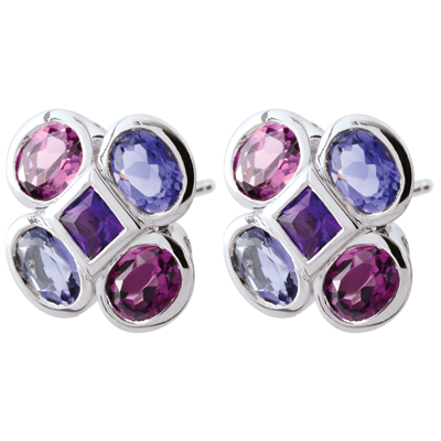 OISEAU DE PARADIS NO. 27Stud Earrings - White gold 9 carats - Amethyst, Iolite, Rhodolite ID : 2443