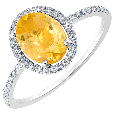 A diamonds halo seems to protect the yellow citrine in its center.