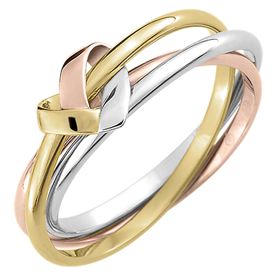 The heart, an icon of jewelery, revisited by Edenly in an origami version where the 3 golds enlace with originality and elegance. A trilogy ring symbolic of a declined mark composed of 3 gold rings, An identity motif of the brand declined trilogy ring composed of 3 rings yellow gold, white gold and pink gold. Three golds (9K Gold = 375/-): 2.9 g. More dimensions