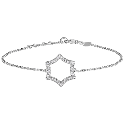 A delicate and feminine white gold bracelet enhanced by a star encrusted with diamonds and set on a chain. Adjustable length : 18cm, 17cm, 16cm.