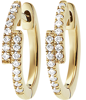 A delicate pair of asymmetrical, semi-pavé hoop earrings for a touch of sparkle and rock.