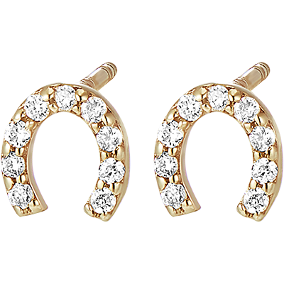A pair of lucky horseshoe-shaped stud earrings set with 18 diamonds.