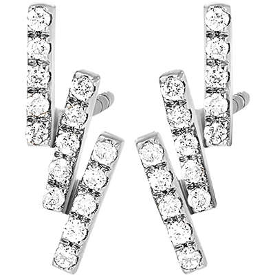 A pair of white gold stud earrings adorned with 30 diamonds, like a sparkling fireworks display. A design that's both modern and timeless.