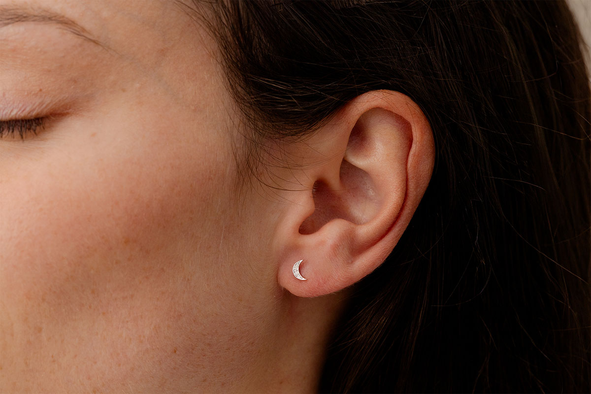 A pair of white gold moon & starshaped stud earrings set with 10 sparkling diamonds for a modern yet elegant look.