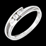 The ring is made of 18K white gold and set with three natural diamonds totaling 0.156 carats, quality HSI.