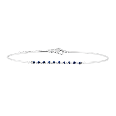 Gracile is a white gold bangle bracelet adorned with fine sapphires. Its delicate chain and clean design make it an essential piece for a touch of finesse and elegance.