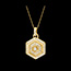 The "Hexad" necklace in 9 carat yellow gold features a hexagonal pendant paved with 62 white diamonds of HSI quality.