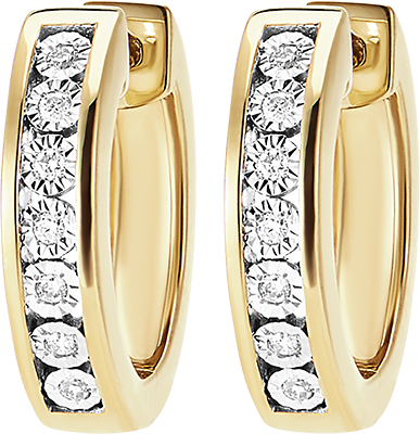 A pair of hoop earrings with a magical setting: the white gold around the diamonds magnifies the diamonds for infallible brilliance.