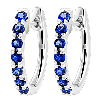 A delicate pair of white gold hoop earrings semi-paved with sapphires for a bright and colorful touch.