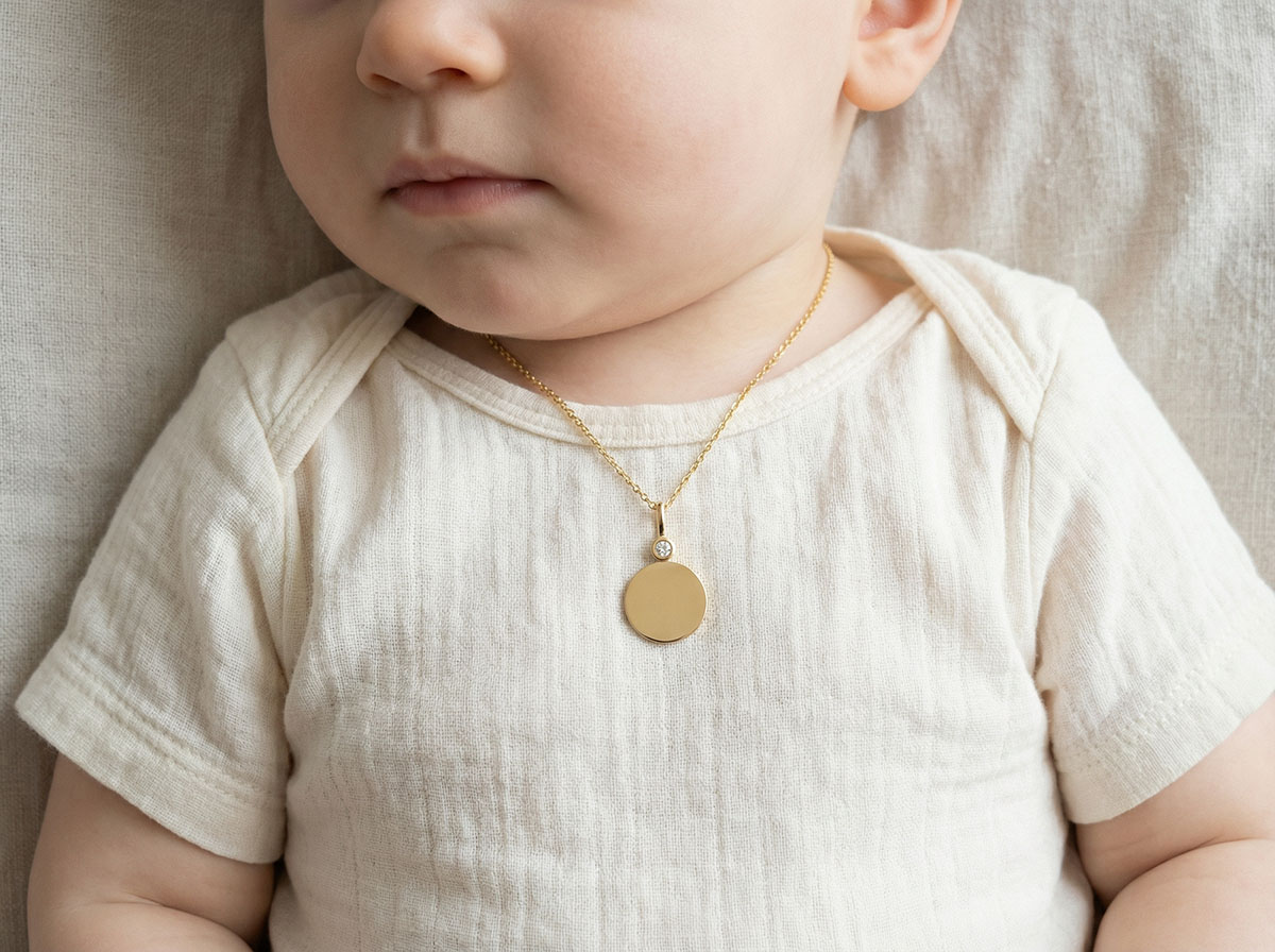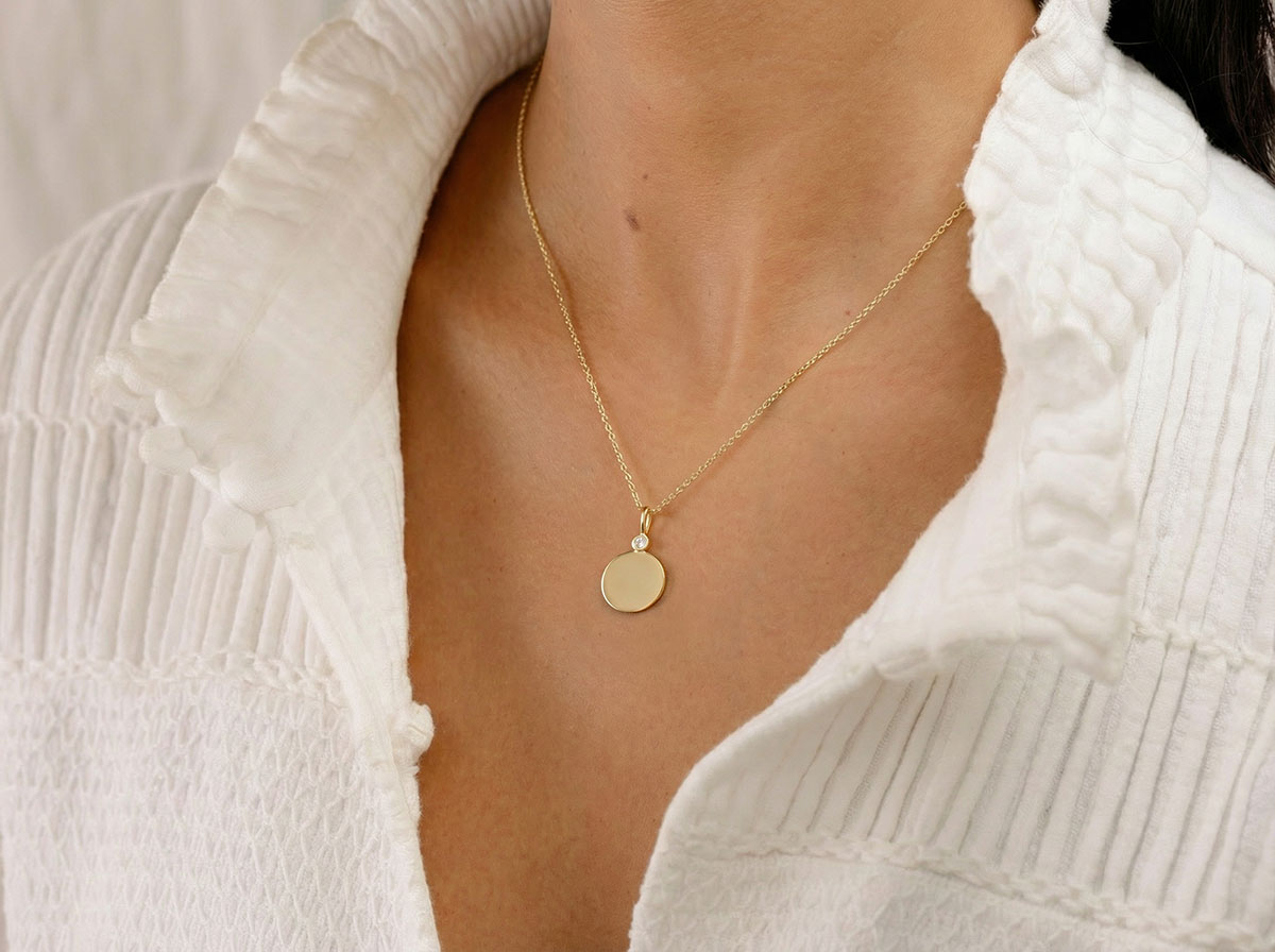 Isaline Engravable Round Medal – 9-Carat Yellow Gold & Lab-Grown Diamonds