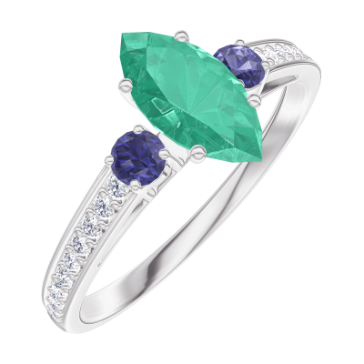 « L'ATELIER » Nº1003130Ring White gold 9 carats - Synthetic emerald Marquise 0.5 Carats - Ring settings Blue Sapphire - Setting Laboratory Diamond