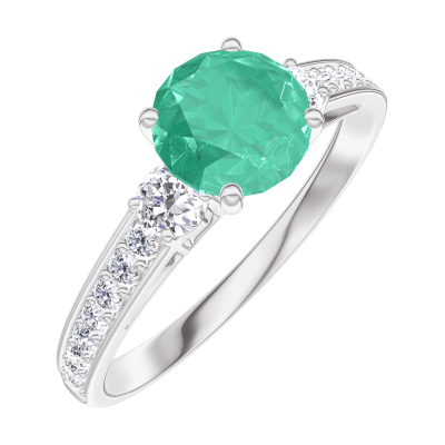 « L'ATELIER » NO. 1004137Ring White gold 18 carats - Synthetic emerald round 0.7 Carats - Ring settings Laboratory Diamond - Setting Laboratory Diamond 4.9
